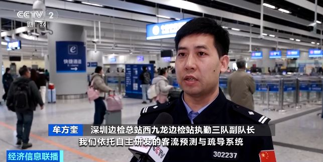 深圳边检总站西九龙边检站执勤三队副队长 牟方奎:咱们依托自主研发的客流预测与请示系统,提前掌合手客流情况,动态增设团队快行专谈,绽开家庭行友好通谈,继续进步通关便利化水平。