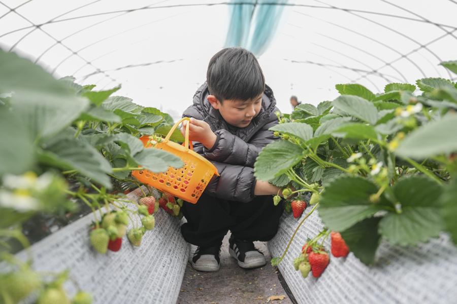 搭客在浙江奉化的草莓扶植园采摘草莓 图片来源:新华社